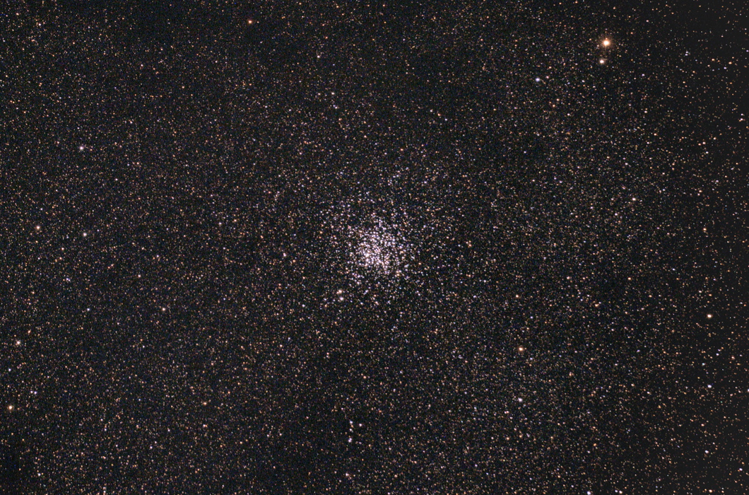 Messier Object 11 ngc 6705 -- the Wild Duck Cluster in Scutum Telescope : Explore Scientific ED127/f7.5 apo Triplet -- Camera : Canon XT-350d modified by Hap Griffin -- Mount : piggyback on Meade LX 200 Classic 12 for more information, go to the SEDS site at http://messier.seds.org/m/m011.html |